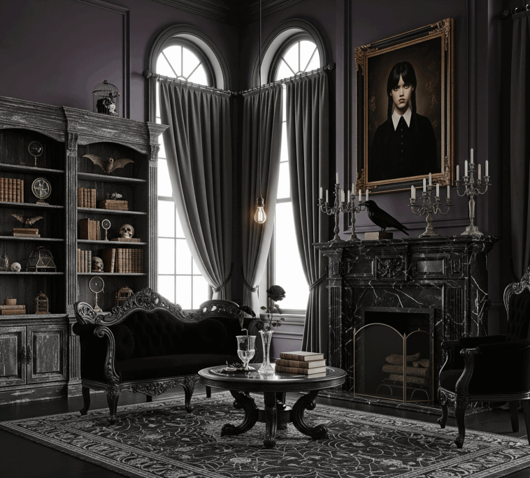 Qui a dit que la décoration d’intérieur devait forcément rimer avec couleurs pastel et ambiance lumineuse ? Si vous avez un faible pour les atmosphères ténébreuses et les clins d’œil au style victorien moderne, alors la fameuse Mercredi Addams pourrait bien devenir votre muse déco. Avec son univers singulier, mélange d’élégance sombre et de détails mystérieux, elle inspire une nouvelle façon de concevoir son intérieur. Ici, pas de superficialité : chaque pièce raconte une histoire obscure mais raffinée, parfaite pour une déco Halloween élégante.