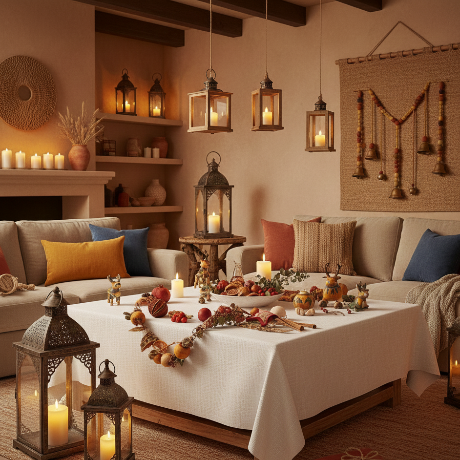 La décoration devient alors un récit de voyage. Les lanternes remplacent les guirlandes électriques. Les textiles artisanaux habillent les tables et les murs. Les objets faits main prennent une valeur émotionnelle forte et racontent une histoire.