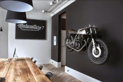 Sur une estrade ou suspendue au mur, s’il s’agit d’une moto, elle deviendra l’œuvre d’art de votre intérieur. Toutes les attentions seront braquées sur elle, alors il faut la mettre en valeur.