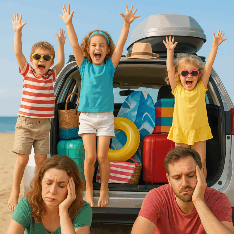 Les « vacances » avec enfants, un vrai débat politique. Partir quand même ? Ne pas partir ? Partir sans eux ? Louer un minibus ? Tenter autre chose que le camping ? Amener les grands-parents aussi ? Manger des sandwichs au Kiri tous les jours ? Se perfuser de crème solaire ? Amener les boules quies ? Tant de questions… bien souvent sans réponse.