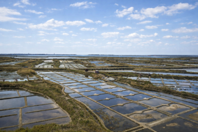 À quelques kilomètres de la côte, le paysage s’ouvre différemment. L’eau est toujours là, mais immobile, contenue, structurée.